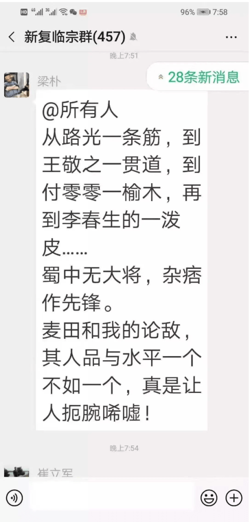 生命之光人员用圣经和怀著在各个微信群活动,麦田人员用巴比伦的教义在各处传播。