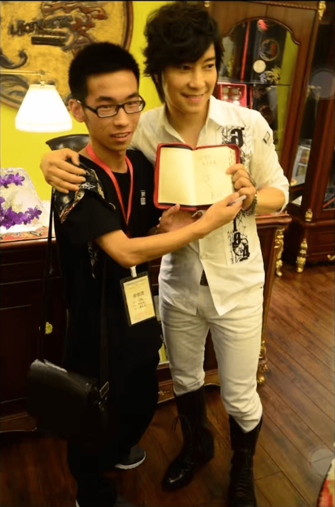 他非常开心的答应了,留了勉励的话语和签名。结束时我光明正大的和邰正宵摆好了pose,转向照相人员,在同事无比惊讶和羡慕的眼光当中留下了这张照片。