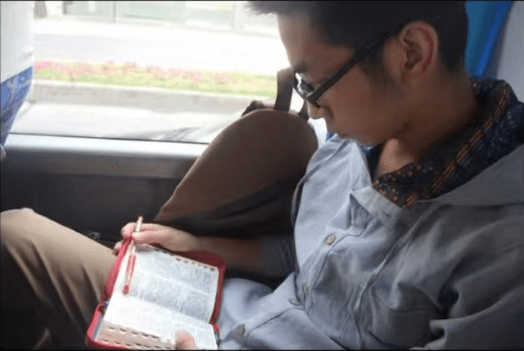 这是一次公司去团建在旅途的车上我在看圣经,被同事拍下来了。