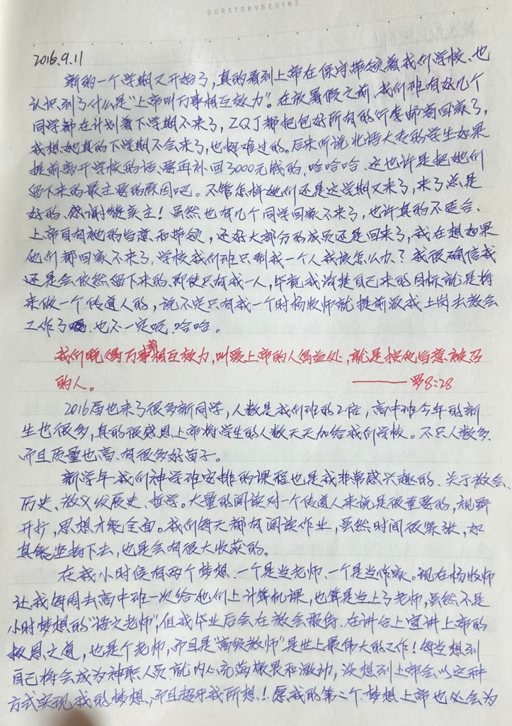 2016届也来了很多新同学,人数是我们班的2倍,高中班今年的新生也很多,真的很感恩上帝就学生的人数天天加给我们学校。不只人数多,而且质量也高,有很多好苗子。
